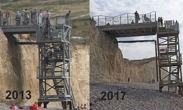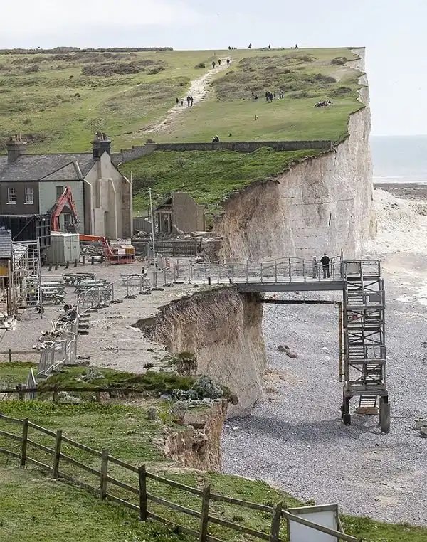 Британский городок Бирлинг-Гэп, что находится в Восточном Суссексе, обрел популярность среди туристов из-за природного явления, которое приводит в ужас местных жителей. Дело в том, что береговая линия постоянно рушится и только за минувшее лето сотни тысяч тонн породы были унесены в море. Скалы рушатся буквально на глазах, что привлекает сюда туристов, которые своими глазами хотят увидеть момент обвала. Такое любопытство уже привело к гибели 23-летнюю студентку, оказавшуюся в момент обрушения на скале. И пока в Бирлинг-Гэп продолжают прибывать туристы, местные власти думают, как им обезопасить всех зевак.