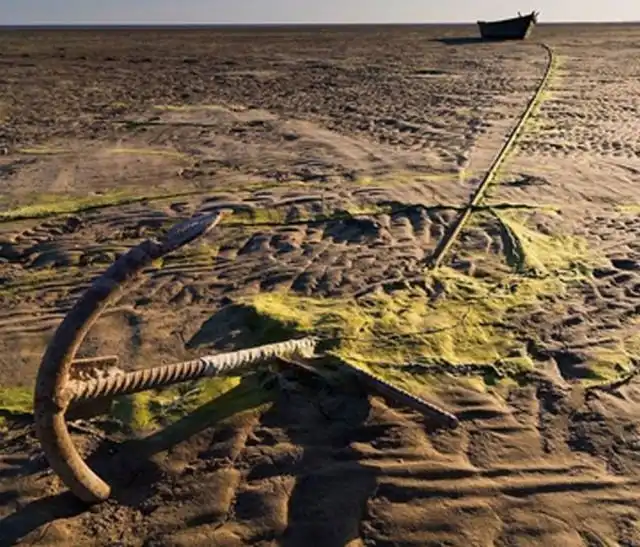 Береговая линия Азовского моря в Таганрогском заливе отступила от своих привычных границ, так как из-за штормового ветра уровень воды в заливе снизился более чем на метр. И пока в акватории скопилось около 60 судов, люди спешат сделать побольше фотографий необычного вида побережья.