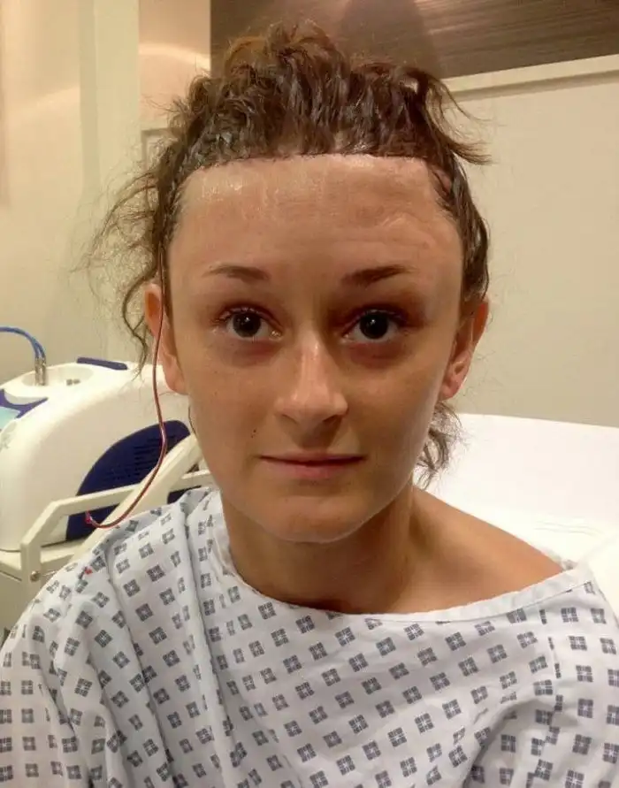 Врачи во время 2-х часовой операции опустили линию роста волос девушки на 3 сантиметра. Период восстановления длился 9 месяцев. Зато ожидание оправдало надежды! Девушка стала выглядеть по-другому!