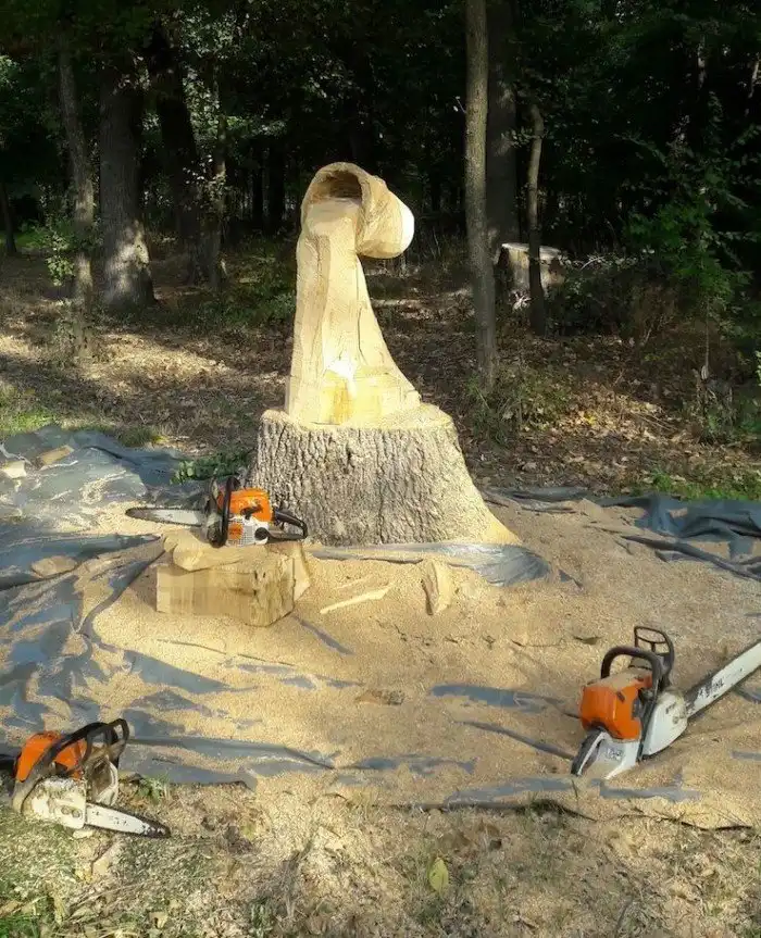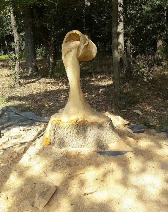 Работа над скульптурой, расположенной в детском парке в Крайове, Румыния, была особенно сложной из-за огромного количества насекомых, поедающих гнилой пень.