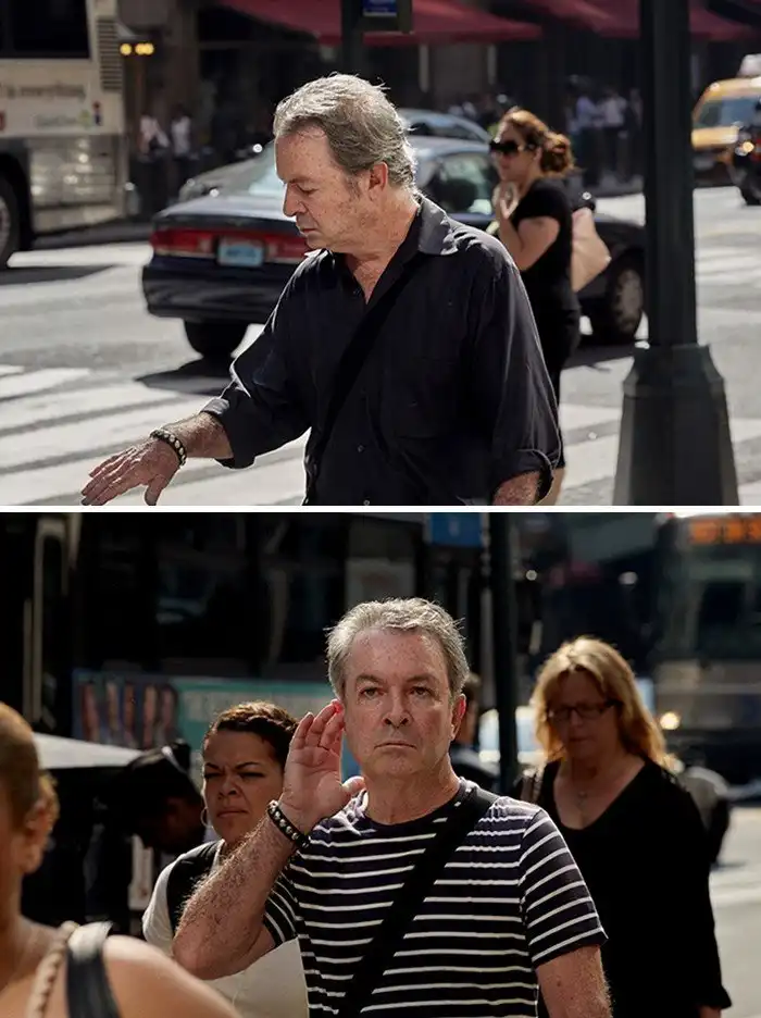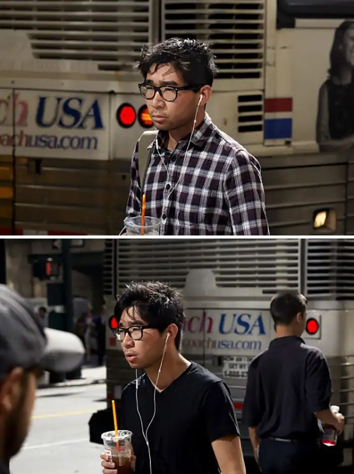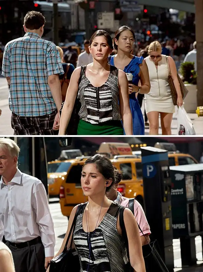 На протяжении 9 лет фотограф Питер Фюнх запечатлевал людей, идущих на работу по улицам Нью-Йорка. Утром, с 8:30 до 9:30, фотограф занимал позицию у станции метро и ловил в объектив людей в городской суете.