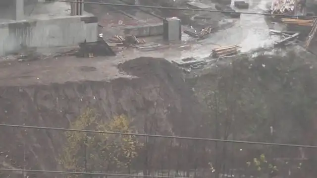 Один из пользователей сети поделился фотографиями многоэтажного дома, который строится напротив его офиса. Изначально дом начали строить на краю оврага, не проведя никаких работ по укреплению грунта. Недавно произошел оползень и обрыв стал еще ближе к дому, однако даже это не смутило строителей.