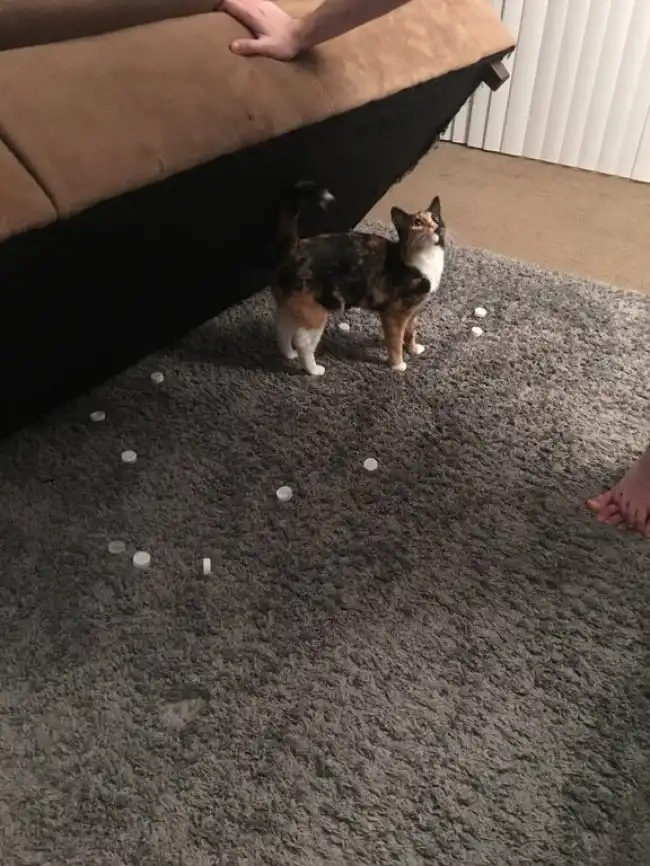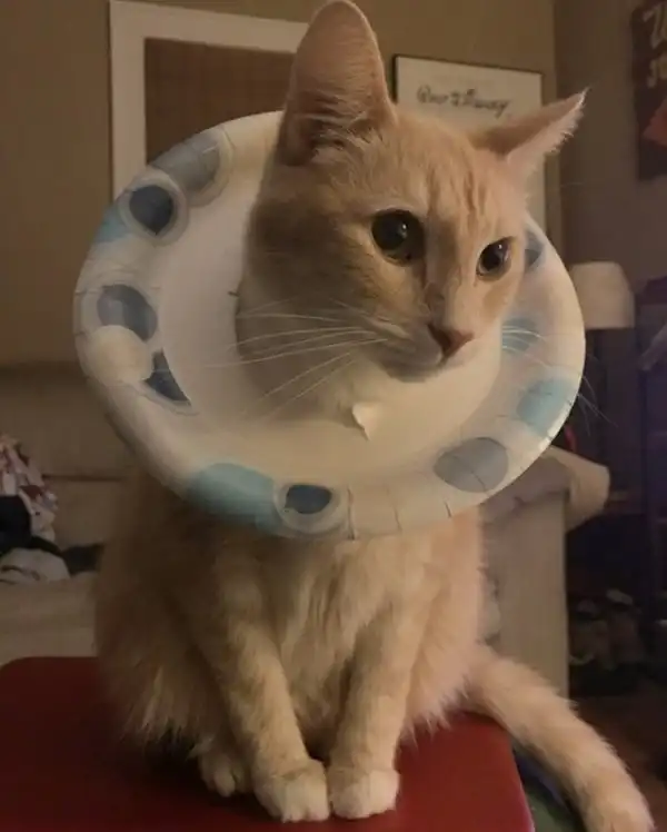 Кот отказывается носить защитный воротник, но тарелка — это совсем другое дело!