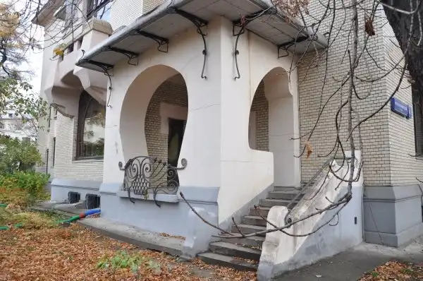 По желанию Рябушинского, который не хотел, чтобы фасад выходил на улицу, Шехтель вынес парадное крыльцо на красную линию, а сам особняк отодвинул вглубь и разбил небольшой сад.