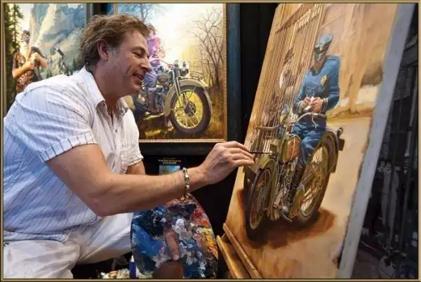 Творчество современного художника Дэвида Уля (David Uhl) практически полностью посвящено мотоциклам. Его картины выполнены в ретро стиле. Это не просто изображение мотоциклов, это целые сцены из жизни разных людей, которые крепко переплетаются с их мотоциклами.