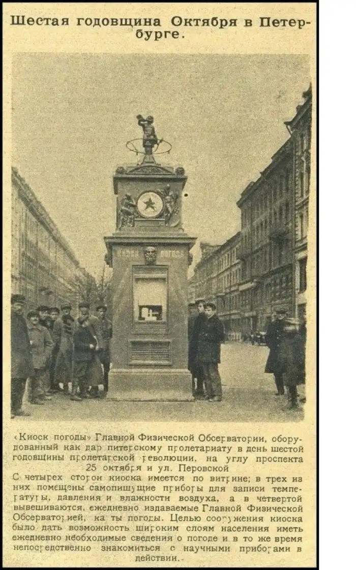 В 1923 г. советская власть установила в Петрограде необычный киоск, при помощи которого жители могли узнать прогноз погоды на ближайшие дни.