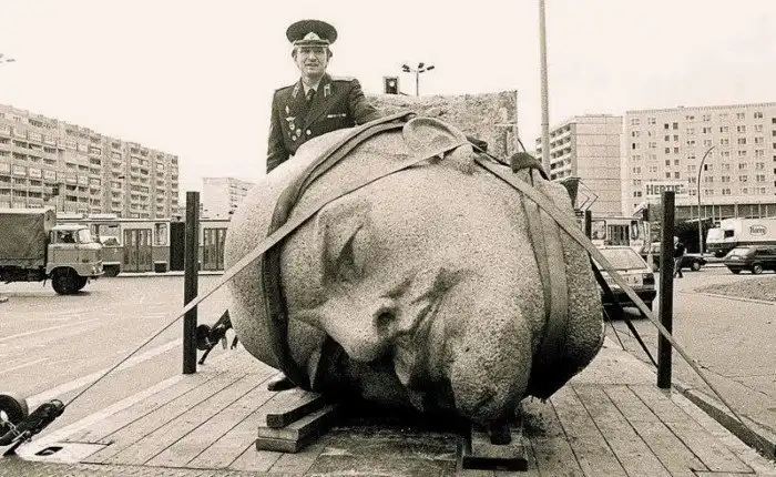 Памятник Ленину увозят с постамента, Берлин, 1991 год.