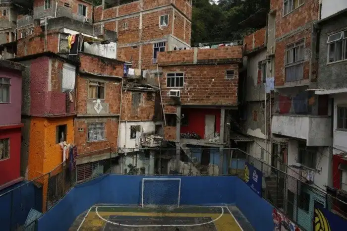 Одна из беднейших трущоб находится прямо возле трассы, соединяющей международный аэропорт Рио-де-Жанейро с центральными районами мегаполиса. Говорят, что шумозащитные щиты, установленные вдоль дороги, специально заклеили рекламными плакатами — так, чтобы туристы не заметили нищеты олимпийского города.