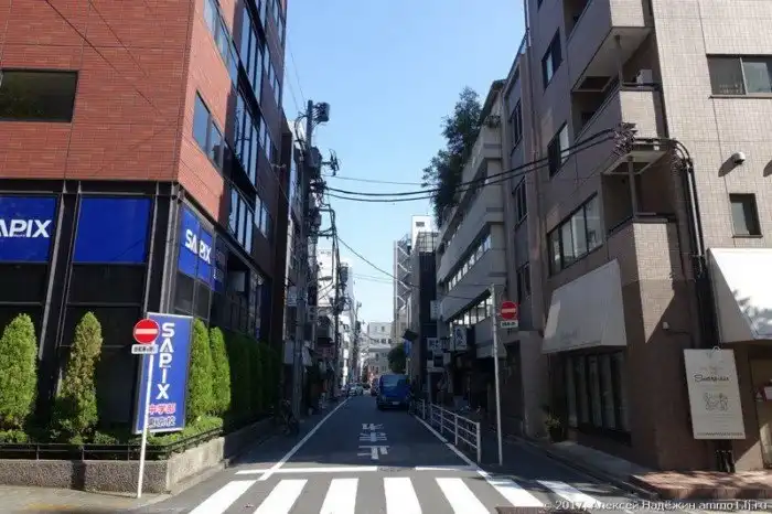Удивительно, но в супертехнологичной Японии часто можно встретить трансформаторы, висящие на столбах. Маленькая тихая улица. А что-это там виднеется слева?