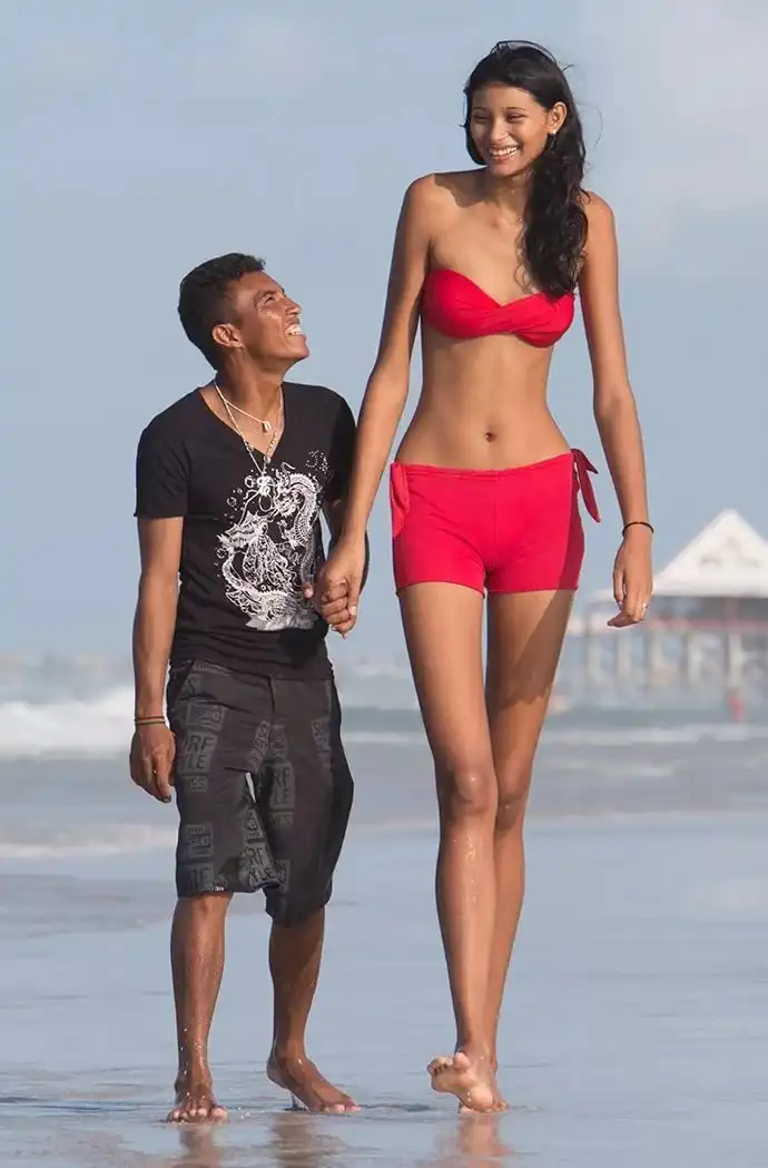 А у нас снова Бразилия и снова самый высокий человек. На этот раз это девушка по имени Элисани да Крус Сильва, мировая рекордсменка с ростом 206 см. Казалось бы логично, если бы ее избранником стал Джолисон Фернандес, о котором мы рассказывали в начале статьи, но у судьбы другие планы. Элисани уже несколько лет счастлива со своим избранником Франчинальдо, который ниже ее на 43 см. Пару не смущает разница в росте, они счастливы и абсолютно не комплексуют по этому поводу.