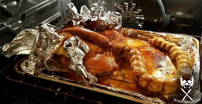 Шеф-повар и пищевой стилист Хеллен Дай (Hellen Die) показала необычное блюдо, которое она предлагает поставить на праздничный стол в честь Дня благодарения. Используя курицу, краба и куриную колбасу, женщина сделала нечто, похожее на детеныша чужого и показала, как приготовить аналогичное блюдо.