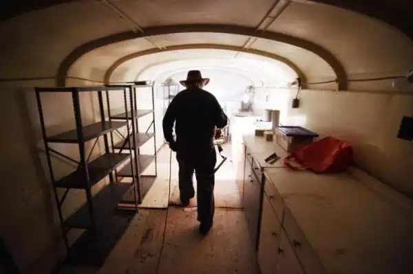 83-летний житель Канады Брюс Бич построил и оборудовал крупнейшее частное убежище от ядерного взрыва в Северной Америке. Площадь бункера, построенного из 42 школьных автобусов, составляет более 900 кв. м. Брюс потратил на строительство убежища 50 лет и теперь гордится тем, что в нем могут укрыться 350 человек.