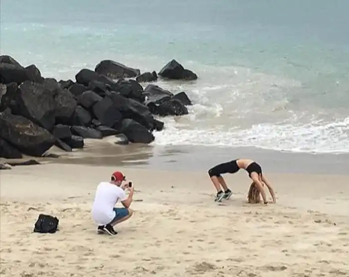 Зачастую парни становятся для своих девушек фотографами, делая им красивые снимки для Instagram. Порой для того чтобы сделать хороший кадр, парни идут на многое, например, принимают нелепые позы. Давайте взглянем на то, как делаются те или иные фото.