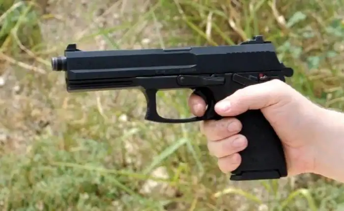 Именно таким пистолетом оснащены бойцы американского полицейского спецназа. Полуавтоматическое оружие имеет модуль под лазерный прицел, глушитель и дополнительную планку для фонаря.