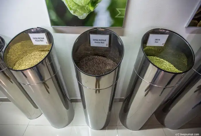 Солод используется российский, хмель в принципе есть в Чувашии, но в целом его закупают в Германии, Чехии, Великобритании и США. Доставляют в Россию в гранулах перемолотым и спрессованным.