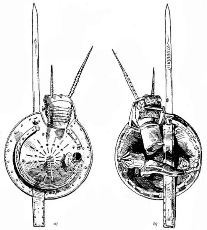 Сокрушитель мечей. Зубцы по обе стороны предназначались для того, чтобы захватить меч противника и затем сломать одним резким движением кистью руки.