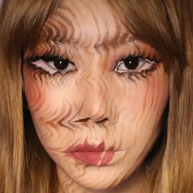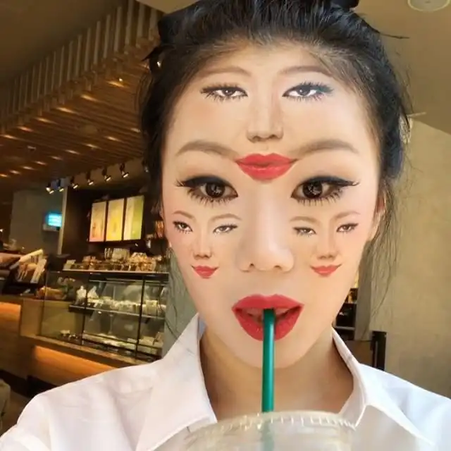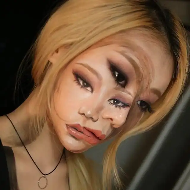 Визажист Дайн Юн из Кореи стала известна в Instagram благодаря своему таланту в области создания оптических иллюзий. Холстом для 24-летней девушки служит ее собственное лицо, на которое она наносит рисунки, похожие на компьютерные спецэффекты. Для своих работ Дайн использует только косметику и специальные краски.