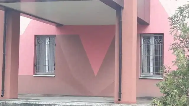 Это монументальное строение с большим орлом, размахивающим крыльями, задумывалось, как парадная, но планы поменялись, а потому на месте дверей теперь стена.