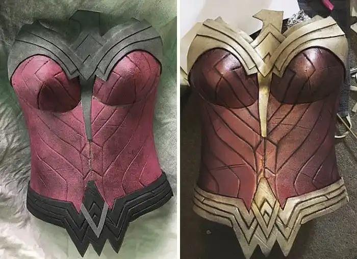 Затем из кусков этиленвинилацетата она сделала узор на груди в виде орла и пояс