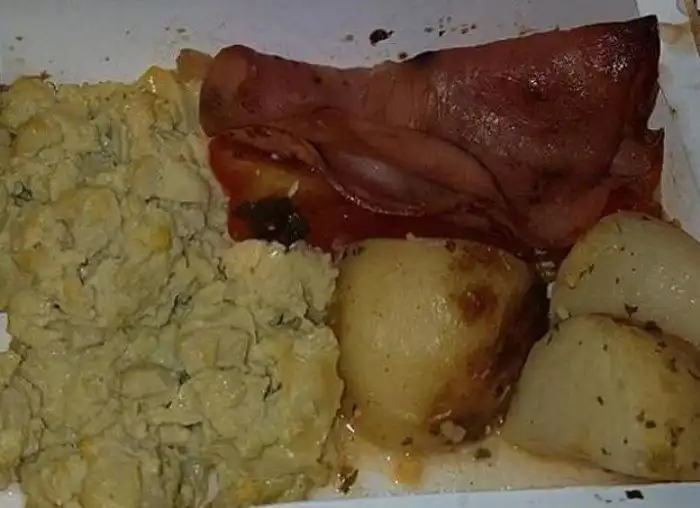 Распознать, из каких продуктов приготовлен этот щедрый завтрак, практически невозможно. Особенно из-за того, что навалены они кучей, как в свиной лохани.