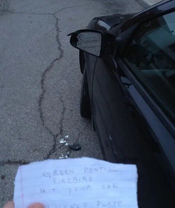 Водитель, ударивший чужую машину и скрывшийся с места происшествия, не уйдет от наказания благодаря неравнодушному прохожему, который заметил номер нарушителя и оставил его владельцу пострадавшего авто.