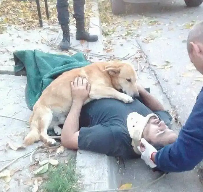 Верная собака в Байя Бланка, Аргентина, оказалась покидать своего хозяина, получившего травму.