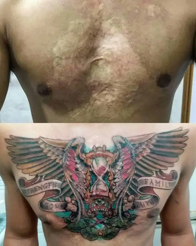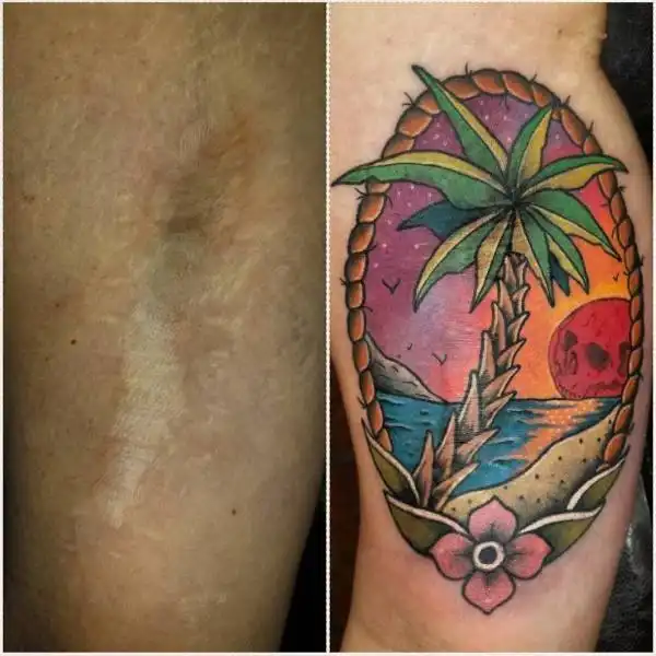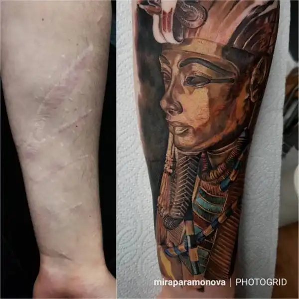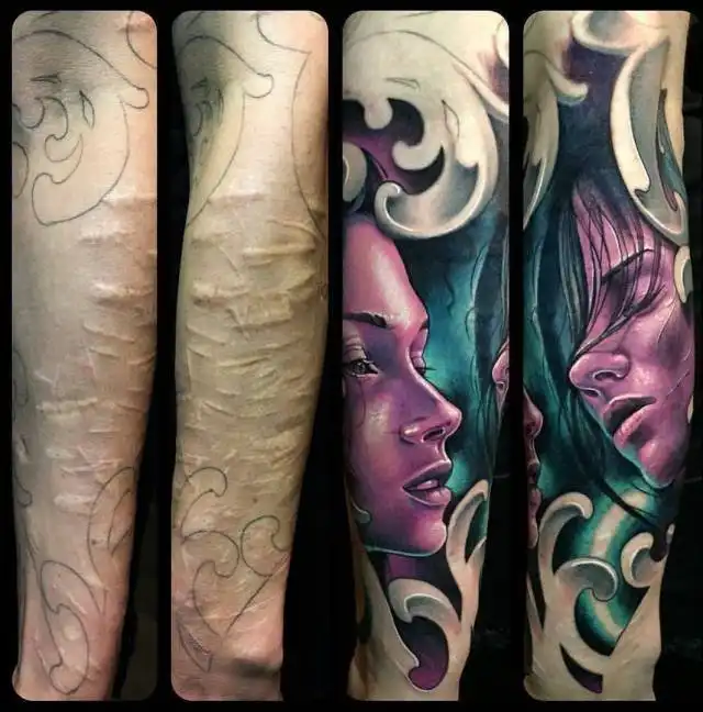 Шрамы на вашем теле можно скрыть, набив поверх них татуировку. Кроме того шрам можно сделать частью какого-либо рисунка. Давайте взглянем на работы, позволяющие преобразить шрамы.