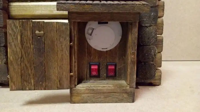 Провели электричество, запитали на батарейку 3V, поставили выключатели. Запрятали всё это в WC.
