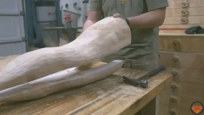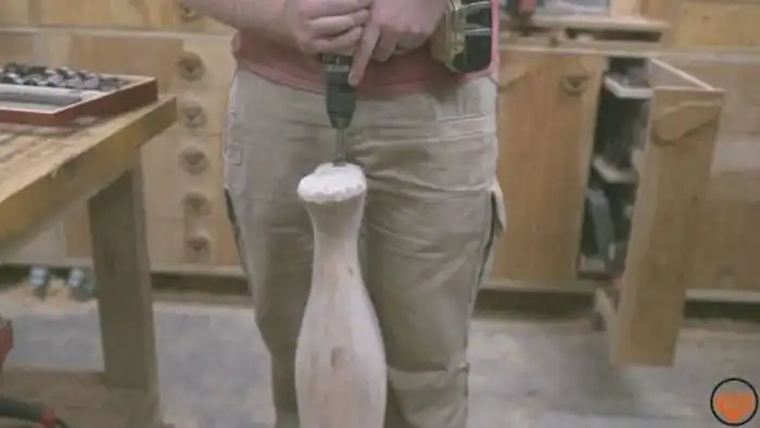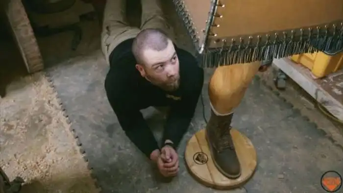 Плотник сделал лампу в виде ноги
