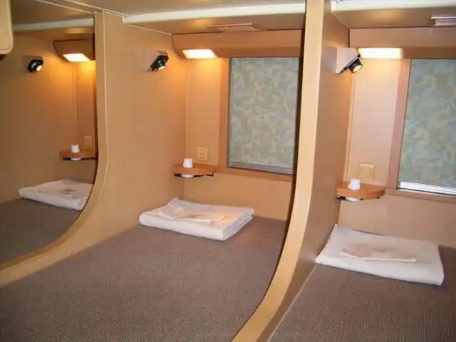 Вагоны нобиноби состоят из двух уровней, каждому пассажиру достается место длиной 220 см. Разделены эти места небольшими перегородками у окна.
