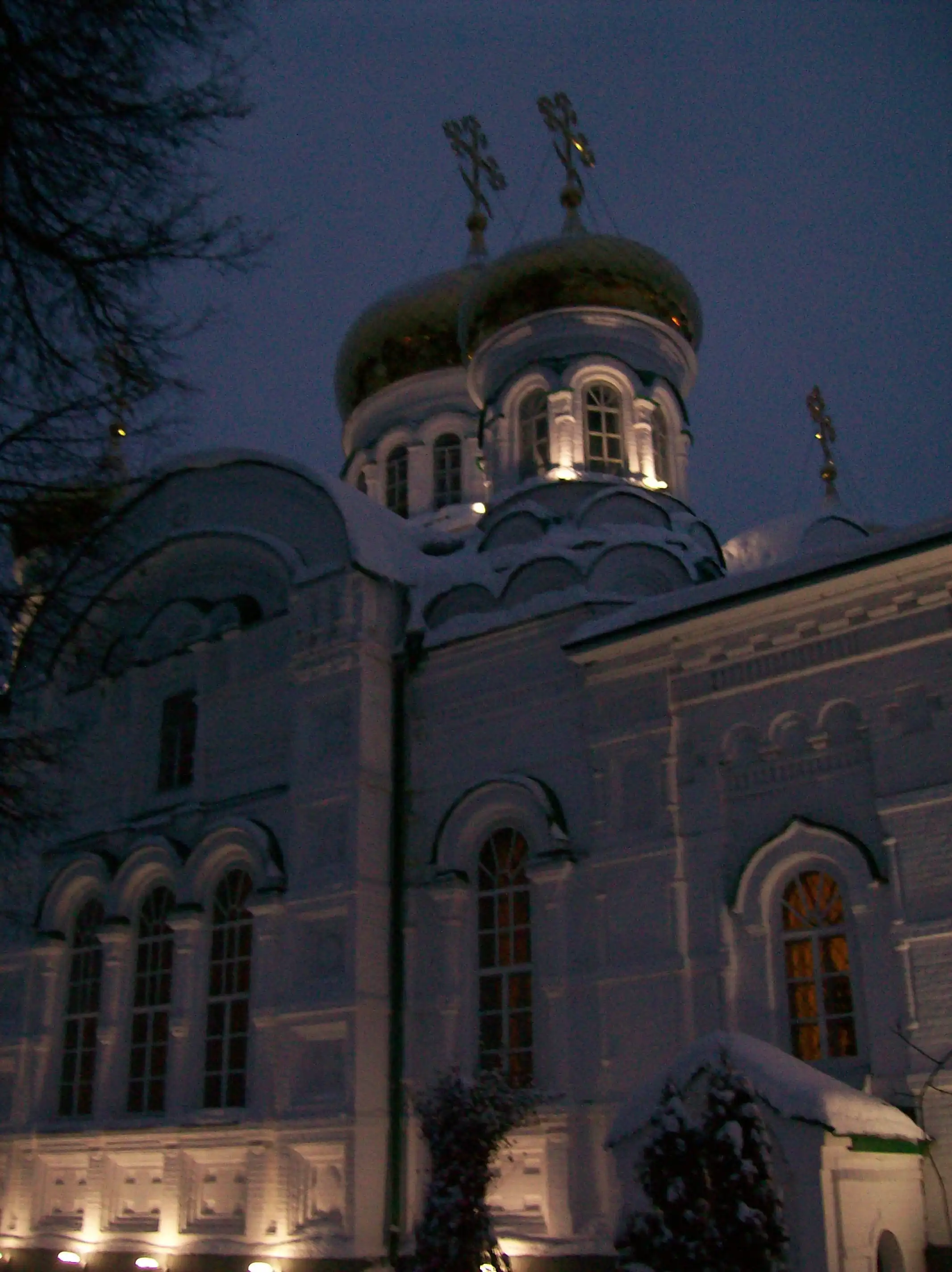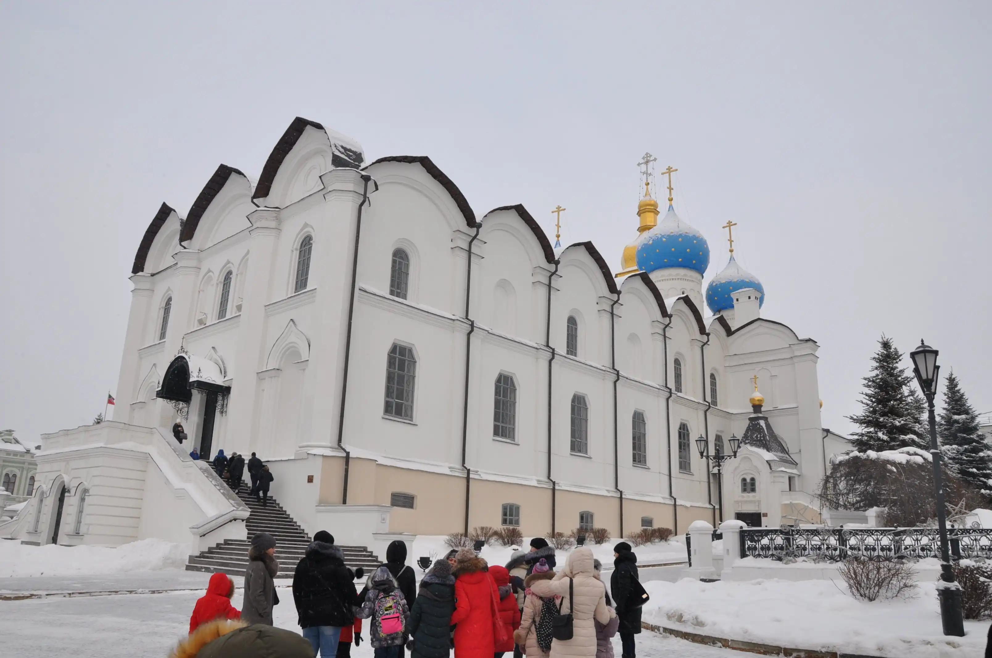Это – Благовещенский собор Казанского Кремля. До революции он считался главным собором Казанского края. Он был основан 4 октября 1552 г. по приказу царя Ивана Грозного сразу после взятия Казани, церковь сложили из бревен за три дня на пустыре, и сам царь водрузил на неё крест. Каменным же Благовещенский собор стал лишь в 1562 г. Собор неоднократно горел, его внешний облик был восстановлен лишь в 1980е гг, а для служб он был открыт в год празднования тысячелетия Казани. Но, как и Кул Шариф, он несёт скорее парадную и представительскую функцию, службы здесь проводятся всего несколько раз в году, а в остальное время он открыт для посещения экскурсантов. Интересно, что главная православная святыня Казани – всем известная чудотворная Казанская икона Божией Матери, чудесным образом обретённая девочкой Матроной на месте родного пепелища находится вовсе не здесь, а в Крестовоздвиженском храме Богородицкого монастыря. Кстати, это не подлинник, а всего лишь список, поскольку подлинник был утрачен в 1904 г. – его похитили и он так и не был найден. Здешний список Казанской иконы Божией Матери называют Ватиканским, потому что он долгое время хранился у папы Римского. Этот список такой же чудотворный, как и утраченный подлинник.