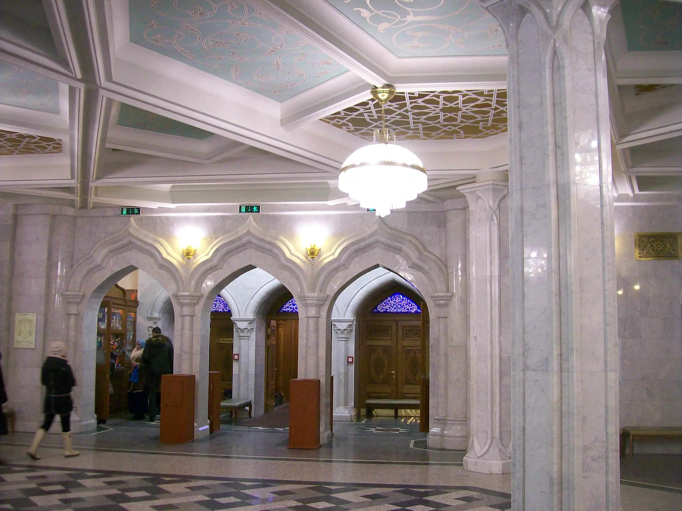 Вот так выглядят изнутри парадный вход и первый этаж мечети.