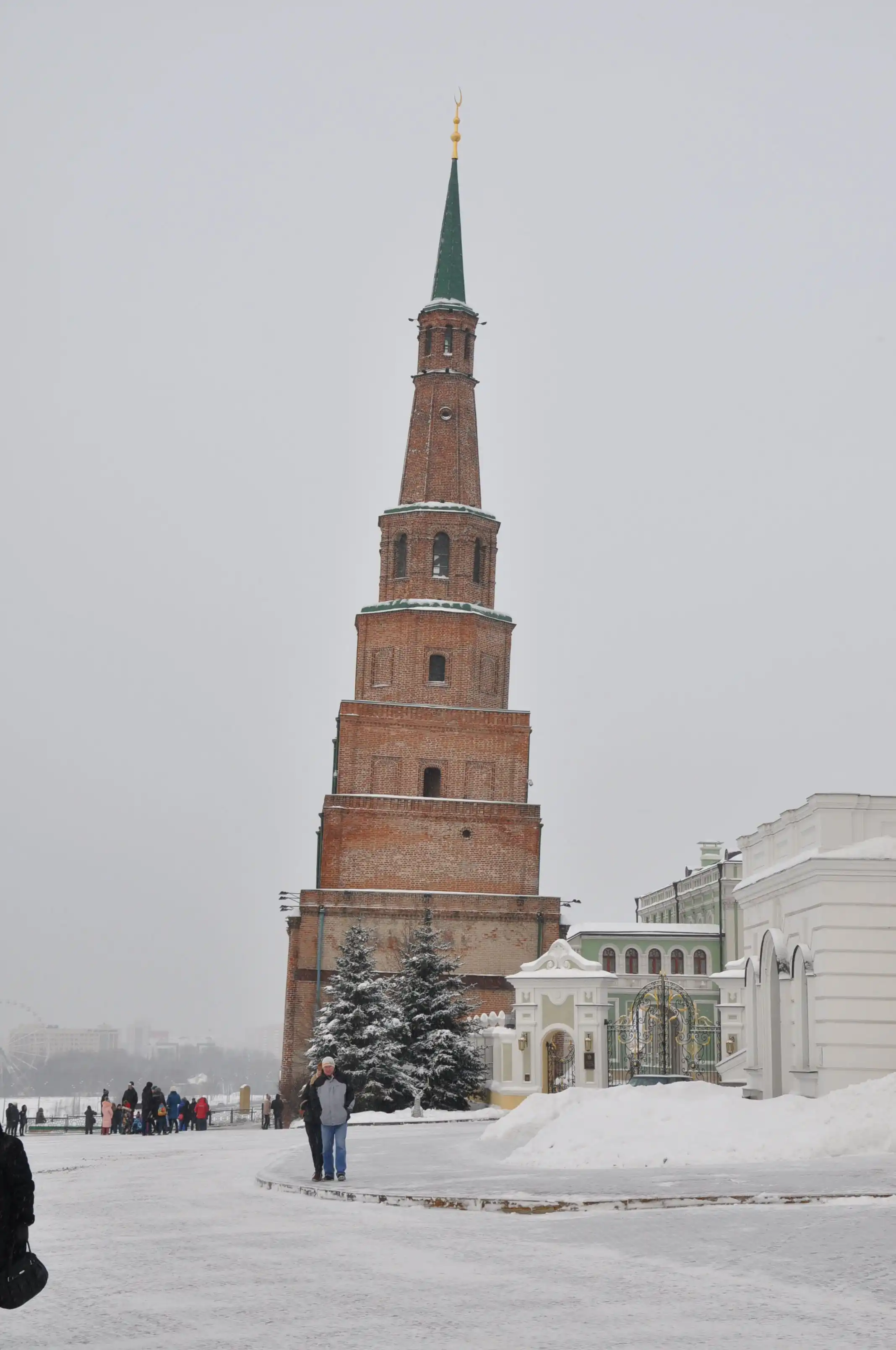 Легендарная башня царицы Сююмбике. Почему легендарная? Построена эта башня, скорее всего, в начале ХVIII века, а легенда связывает её появление с именем Ивана Грозного и последней казанской царицы Сююмбике – это, кстати, реальная историческая личность. Иван Грозный, якобы, был очарован необыкновенной красотой царицы и потребовал, чтобы она стала его женой. Сююмбике была в замешательстве: ей не хотелось идти замуж за русского царя, но отказать ему впрямую она тоже не могла, опасаясь неисчислимых бедствий для своего народа. Тогда она поставила ему неразрешимую задачу – выстроить для неё за 7 дней в подарок к свадьбе высоченную семиярусную башню. Царь призвал лучших своих строителей, и они выстроили эту башню. Строили по одному ярусу в день, без заранее определённого плана, поэтому все ярусы разные. Во время свадебного пира Сююмбике попросила разрешения у грозного русского царя подняться на подаренную ей башню – проститься с городом и с народом, но поднявшись на башню, она бросилась с неё вниз, чтоб не достаться царю-завоевателю и не покинуть дорогой её сердцу Казани.