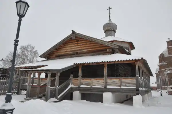 Мы находимся на территории Богородице-Успенского мужского монастыря. Он был основан в 1555г. архимандритом Германом, который принимал деятельное участие в строительстве града Свияжска. Через 11 лет после этого, как говорится, за отличные успехи, Иван Грозный решил приблизить его к себе и вызвал в Москву, а архиепископ Герман, вместо того, чтоб демонстрировать примерное поведение, начал обличать опричнину и грехи царя, за что и поплатился – был убит на царском дворе. В 1595 г. были обретены мощи архиепископа Германа, он был канонизирован, именуется теперь Святителем Германом и является покровителем Свияжска. Наиболее известное и даже задокументированное чудо от мощей Святителя Германа – жуткий смерч, случившийся на острове в 1923 г. в момент вскрытия красноармейцами раки с мощами.