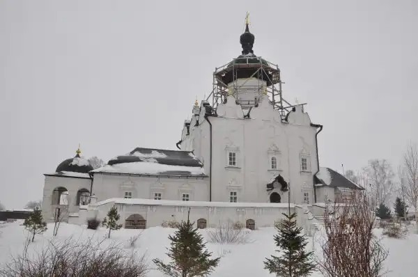 Это Троицкий собор Раифского Богородицкого мужского монастыря . Раифа – не татарское название, а древнееврейское. Инок Филарет, удалившийся в сию пустынь в 1613 г. сравнивал свою жизнь с жизнью в Раифском монастыре, который существовал в древности на Святой земле, ибо и тот монастырь был осаждаем со всех сторон язычниками. Сейчас это крупнейший действующий мужской монастырь казанской епархии. Считается, что это первый монастырь, построенный в окрестностях Казани после взятия её Иваном Грозным и первый возродившийся из руин в 1991 г.