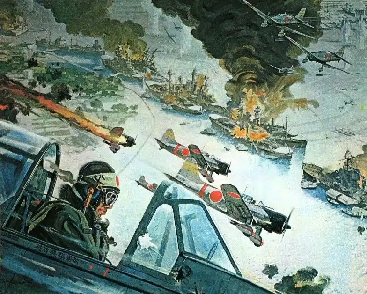Рисунки, выполненные художником Робертом Макколлом для создания рекламных постеров художественного фильма американо-японского фильма 1970-го года "Тора! Тора! Тора!"