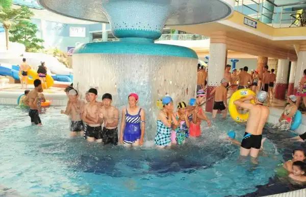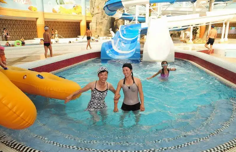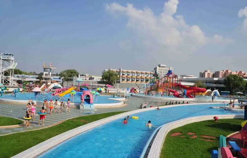 Турист из Израиля посетил аквапарк Munsu Water Park в Пхеньяне и сделал несколько интересных снимков. На территории парка в 37 акров (149733,82 кв.м) расположены крытый и открытый бассейны, реки, разнообразные горки и тренажерный зал. Удовольствие это не из дешевых и доступно далеко не всем гражданам. Провести в аквапарке 4 часа стоит более $9, при том, что средний еженедельный доход в Северной Корее составляет около $33. Иностранных посетителей везде сопровождает гид, даже в раздевалке.