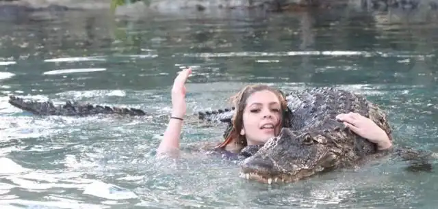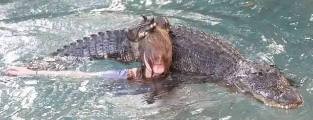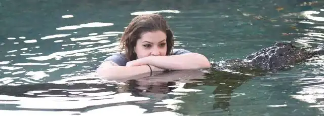 Этой девушке удалось сделать несколько эффектных снимков в обнимку с крокодилом, который спокойно лежал на поверхности воды и совершенно не проявлял никакой агрессии.