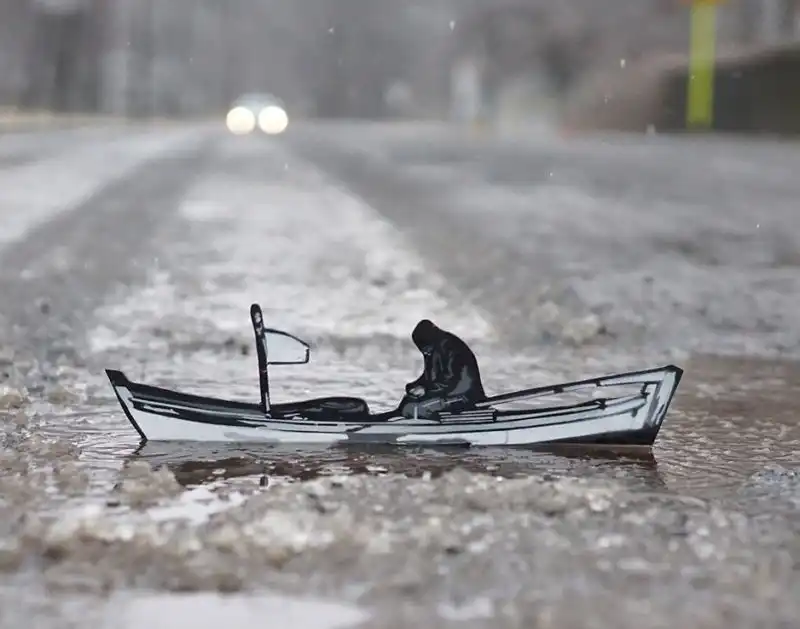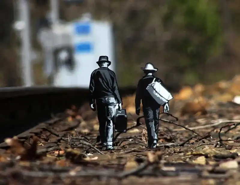 Уличный художник Джо Иурато из Нью-Джерси уже несколько лет верен своему любимому проекту: он создает деревянные фигурки людей и внедряет их в городской пейзаж самым неожиданным образом. Его человечки выглядывают из луж, рисуют на асфальте, взбираются по стенам... Сюжеты незатейливы, понятны каждому, и оставляют огромное впечатление.