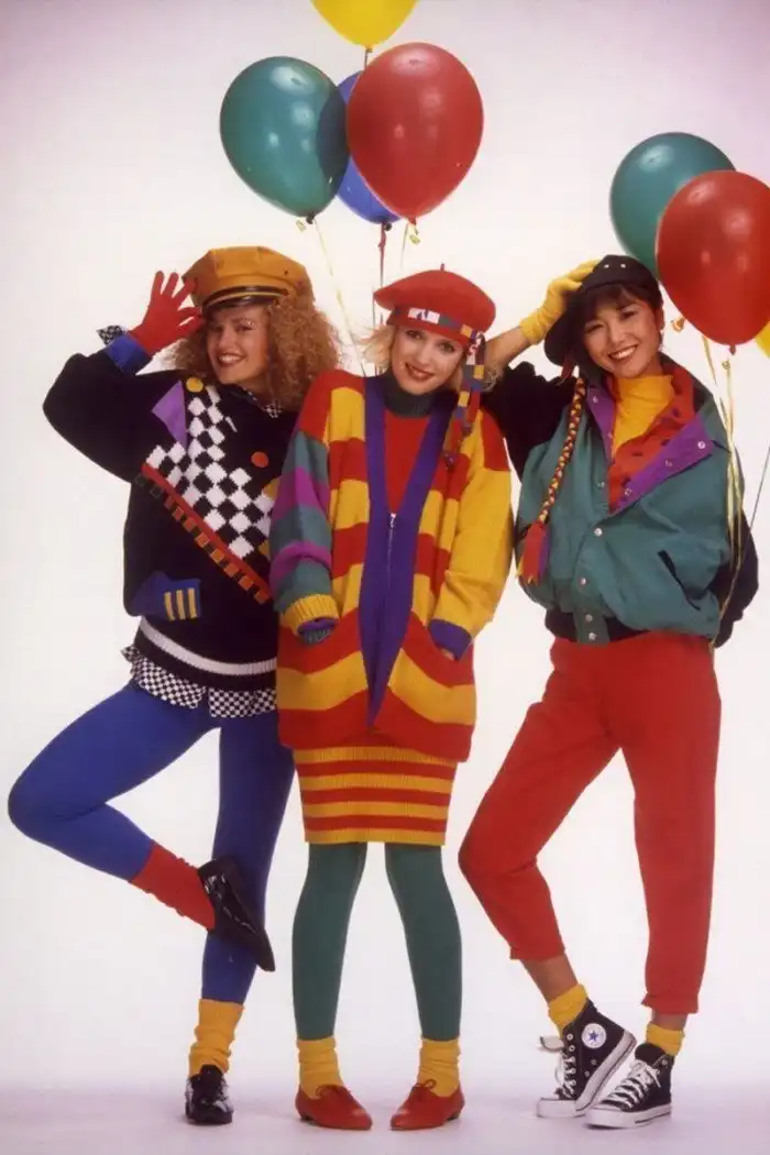 Цветные леггинсы. Мини-юбка поверх лосины. Неон повсюду. Худший цветной макияж в истории макияжа. 600 резиновых браслетов для ваших запястий. Все это так дико.