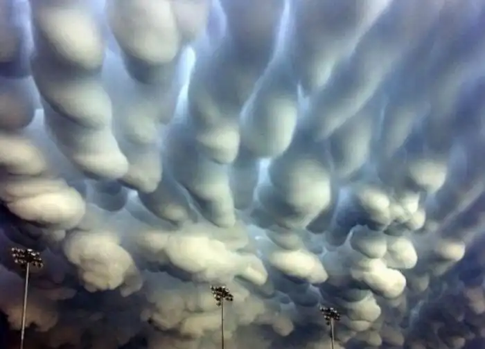 Редкие для средних широт вымеобразные облака появляются, как правило, после сильной грозы. Возникают они из-за движений масс воздуха, направленных в разные стороны и, несмотря на угрожающий вид, не таят в себе никакой опасности.