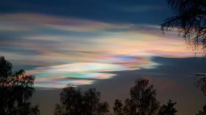 Еще одно явление, вызванное преломлением солнечных лучей. Возникают такие облака на высоте не менее 15 км, а минимальная температура, необходимая для их образования, составляет -78 °C.