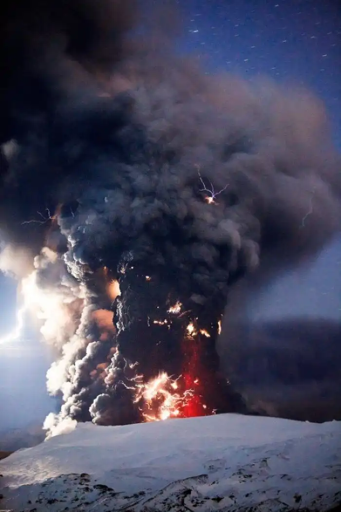 Вулканические молнии образуются во время извержения вулканов из-за столкновения пепла и газа, выбрасывающихся во время катаклизма. Явление это еще более редкое, чем просто извержение вулкана, а заснять его на камеру — и вовсе огромная удача.