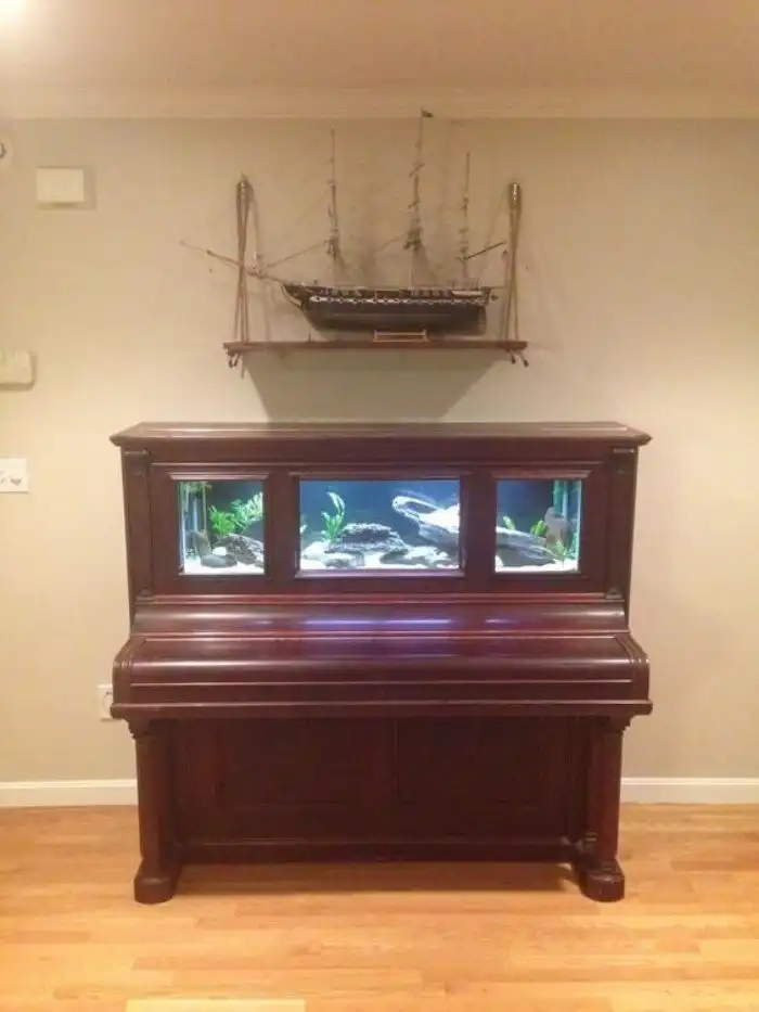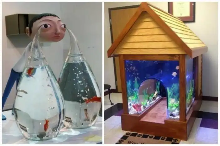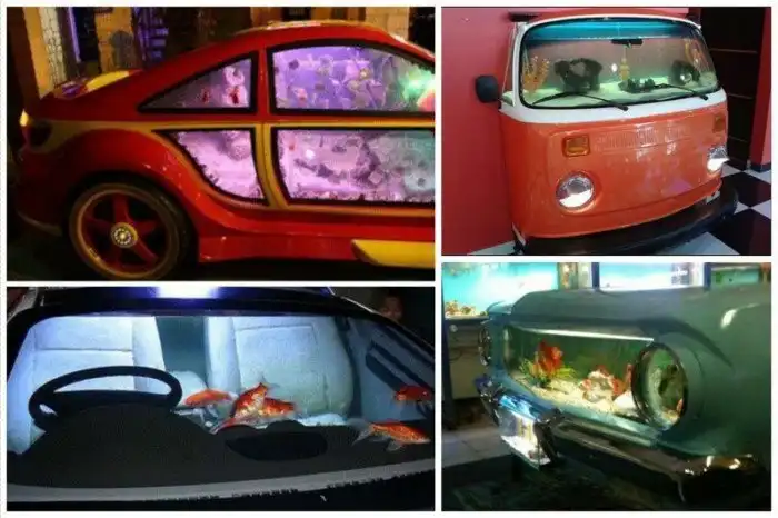 Как успокаивает и умиротворяет вид аквариумных рыбок, медленно плавающих туда-сюда среди зелени и камешков. Но аквариумистам, с их сумасшедшей фантазией одного умиротворения мало - им надо поразить, удивить, довести до экстаза, чтобы потом возбужденного зрителя, увидевшего эти аквариумы, успокаивать теми самыми рыбками.