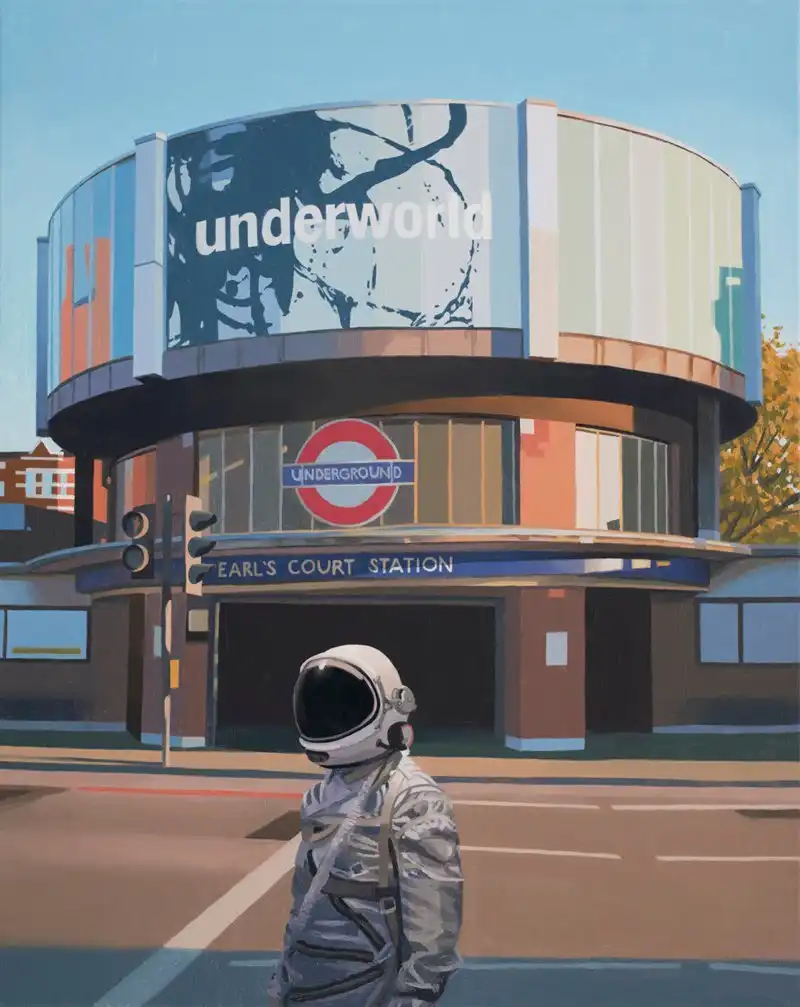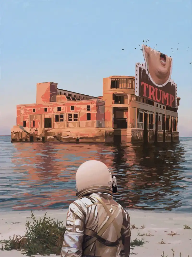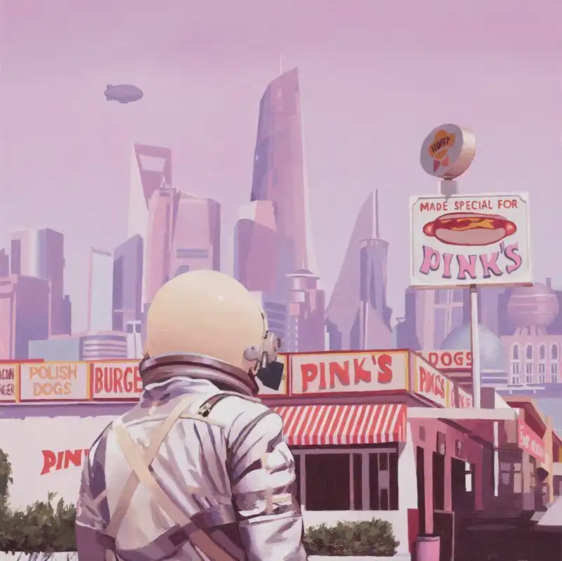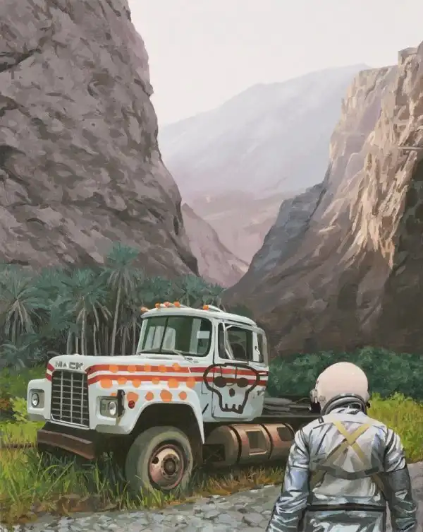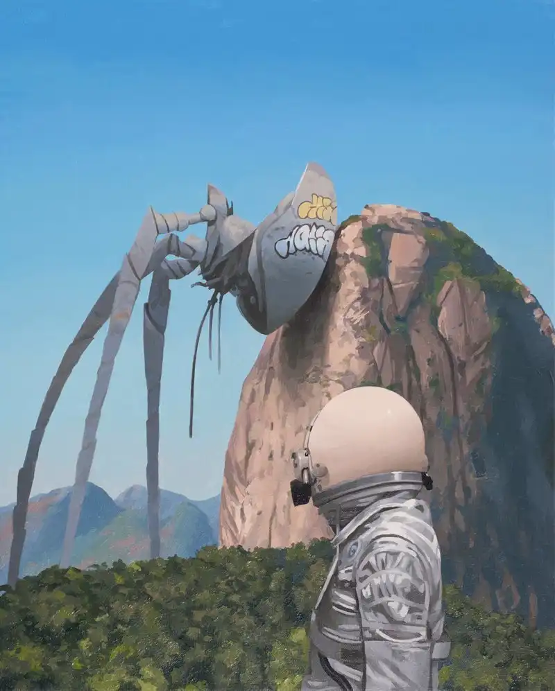 Американский художник Скотт Листфилд вот уже несколько лет пишет картины о блуждании одинокого астронавта по постапокалиптичной планете. Листфилд работает в жанре поп-сюрреализма и постоянно помещает своего астронавта в пейзажи, загромождённые символами поп-культуры и известными логотипами.