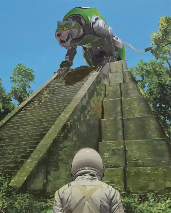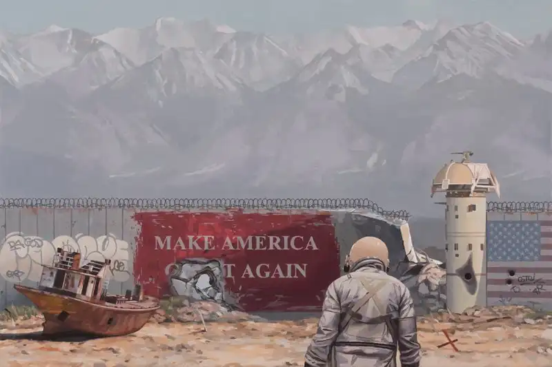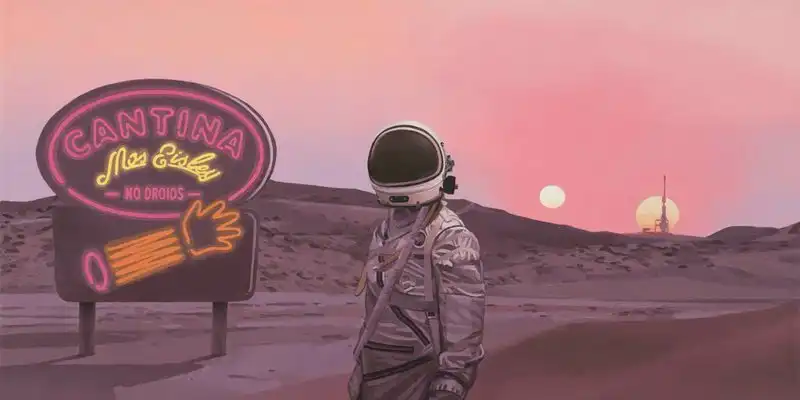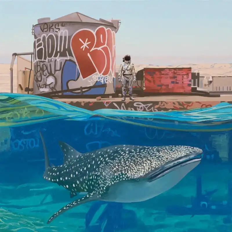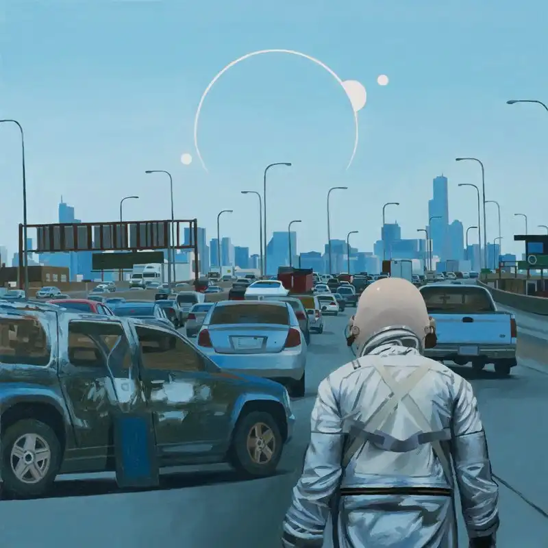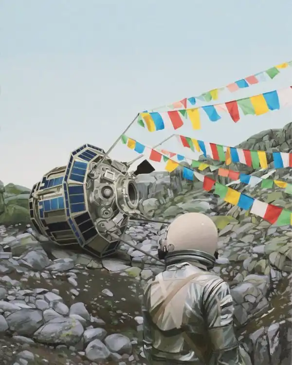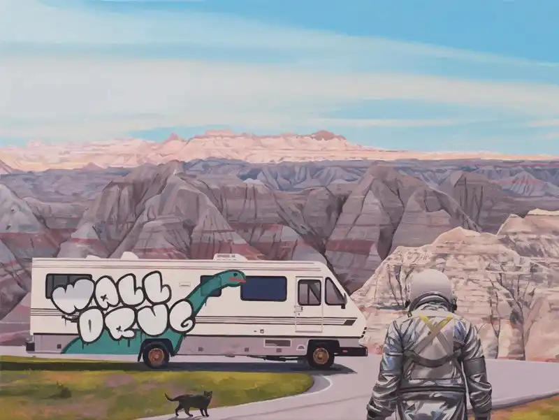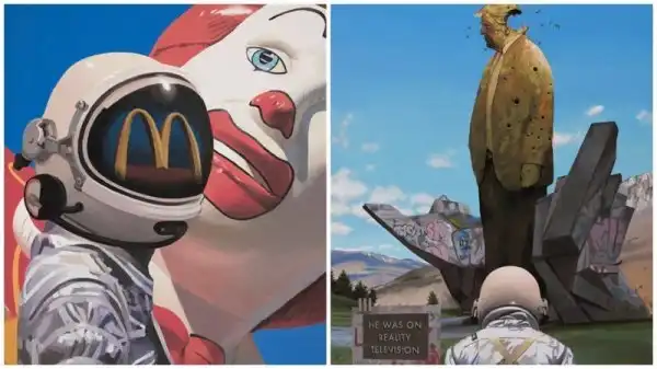 Американский художник Скотт Листфилд вот уже несколько лет пишет картины о блуждании одинокого астронавта по постапокалиптичной планете. Листфилд работает в жанре поп-сюрреализма и постоянно помещает своего астронавта в пейзажи, загромождённые символами поп-культуры и известными логотипами.