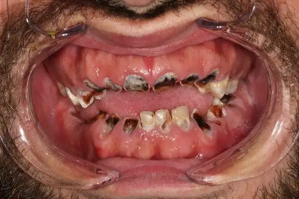 32-летний Майкл Шеридан - человек, который ежедневно употреблял по 6 литров газировки. Десять лет назад его начала беспокоить зубная боль, из-за которой почти все его зубы загнили и раскрошились. Майкл не мог укусить даже бутерброд, поэтому питался йогуртами и супами. Он с детства понимал, что когда-нибудь эта зависимость его подведет, и что у него не будет денег на дантиста. На счастье, о его проблеме узнал его товарищ, с которым вместе играли в водное поло - он оказался дантистом и бесплатно оказал Майклу услуги по замене 27 зубов на протезы. Для обычного человека счет составил бы порядка 50 000 евро. Сейчас Майкл рад новым зубам и готов начать все заново.