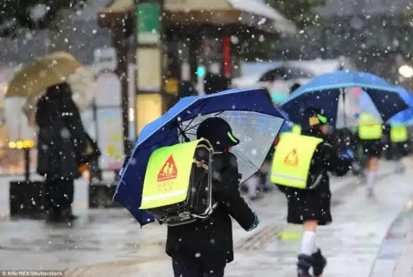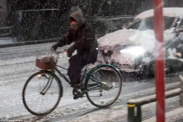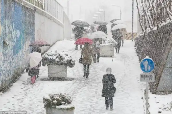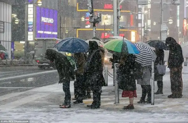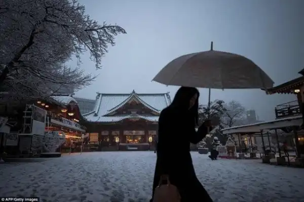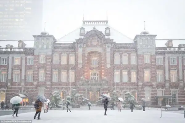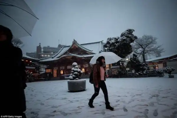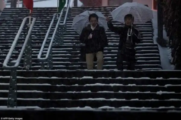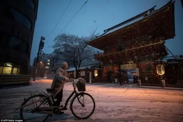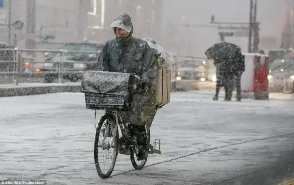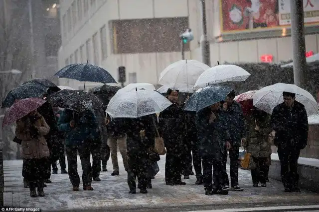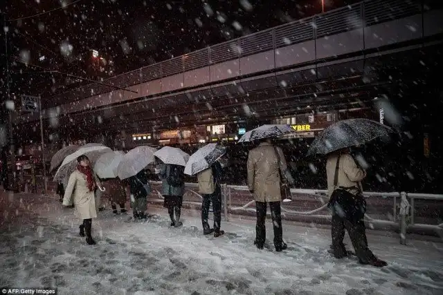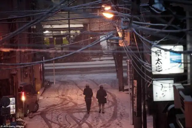На этой неделе в Токио ударили сильные морозы - температура в городе опустилась до рекордных -4 градусов Цельсия. Таких холодов в стране не было уже 48 лет. В самом Токио произошел транспортный коллапс - там выпало очень много (конечно, по местным меркам) снега, машины встали в пробки, люди начали поскальзываться, падать и травмироваться, что создало большую нагрузку для скорой помощи. Которая, в свою очередь, оказалась неготовой к такому катаклизму. Местные пожарные сообщили, что сутки ответили на рекордные 2886 звонков с просьбами о помощи. Свежие фотографии с места событий: