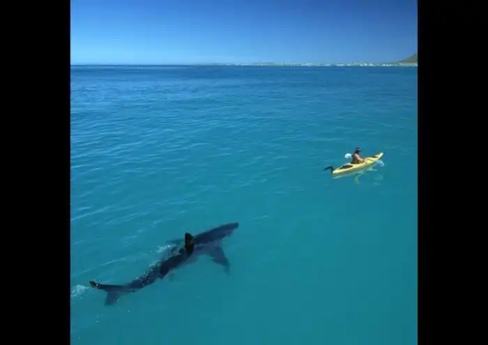 На самом деле, фото акулы Майкл взял в журнале National Geographics за 2005 год. В оригинале оно называлось "Акула-детектив" и изображало морскую хищницу, преследующую в море каякера. Она была сделана фотограом Томасом Пескаком у берегов Южной Африки. По рассказам фотографа, каякер заметил акулу лишь после того, как Пескак сделал снимок.