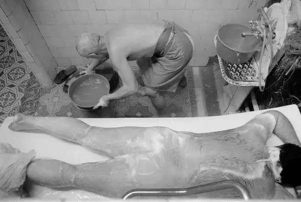 Фотограф Джереми Николл побывал в Сандуновских банях Москвы в конце 1990-х годов и сделал серию чёрно-белых снимков.
